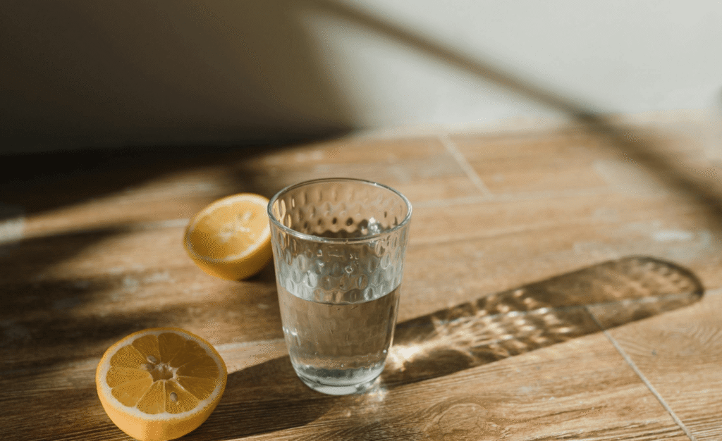 Instead of reaching for coffee immediately, start with water. Not just a sip. A deliberate intake.